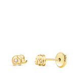 18K PENDIENTES ORO AMARILLO ELEFANTE CON CIRCONITA 5 X 3 MM, CIERRE TUERCA