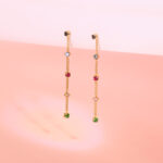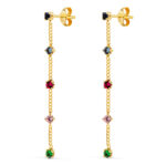 18K PENDIENTES ORO AMARILLO LARGOS CON CADENA Y CIRCONITA COLORES 39 MM, CIERRE PRESION