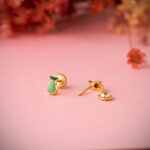 18K PENDIENTES ORO AMARILLO PERA ESMALTE VERDE 6 X 4 MM, CIERRE TUERCA