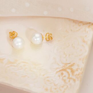 18K PENDIENTES ORO AMARILLO PERLA 7X4 MM TUERCA