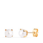 18K PENDIENTES ORO AMARILLO PERLA CON 4 GARRAS, MEDIDA: 5 MM, CIERRE PRESION