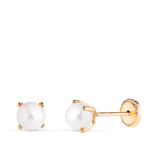 18K PENDIENTES ORO AMARILLO PERLA CON 4 GARRAS, MEDIDA: 5 MM, CIERRE TUERCA