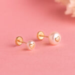 18K PENDIENTES ORO AMARILLO PERLA CON INTERIOR DE CORAZON, MEDIDA: 7 MM, CIERRE TUERCA