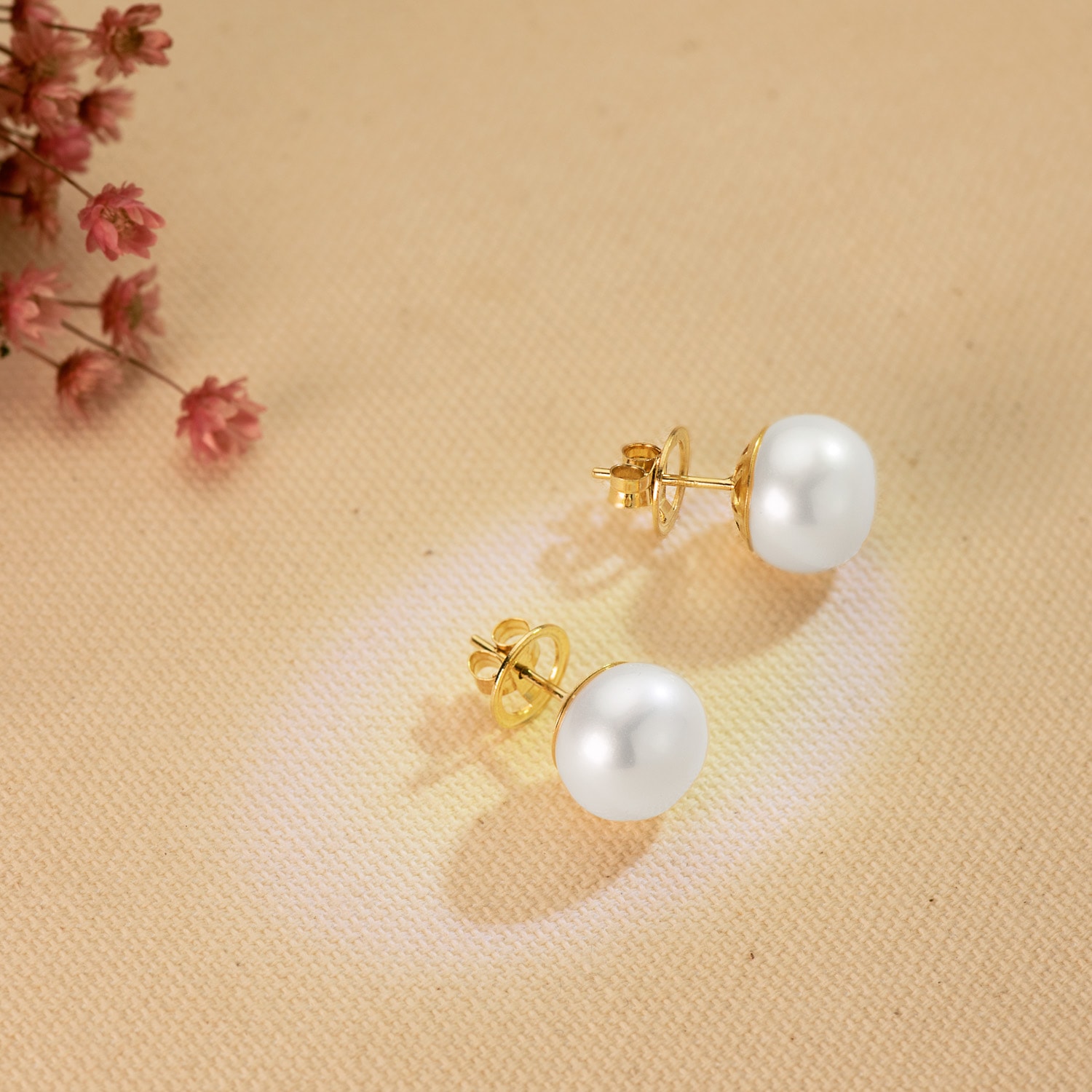 18K PENDIENTES ORO AMARILLO PERLA CULTIVADAS 12-13 MM CIERRE PRESION