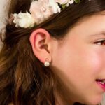 18K PENDIENTES ORO AMARILLO PERLA Y FLOR 12X8 MM CIERRE PRESION