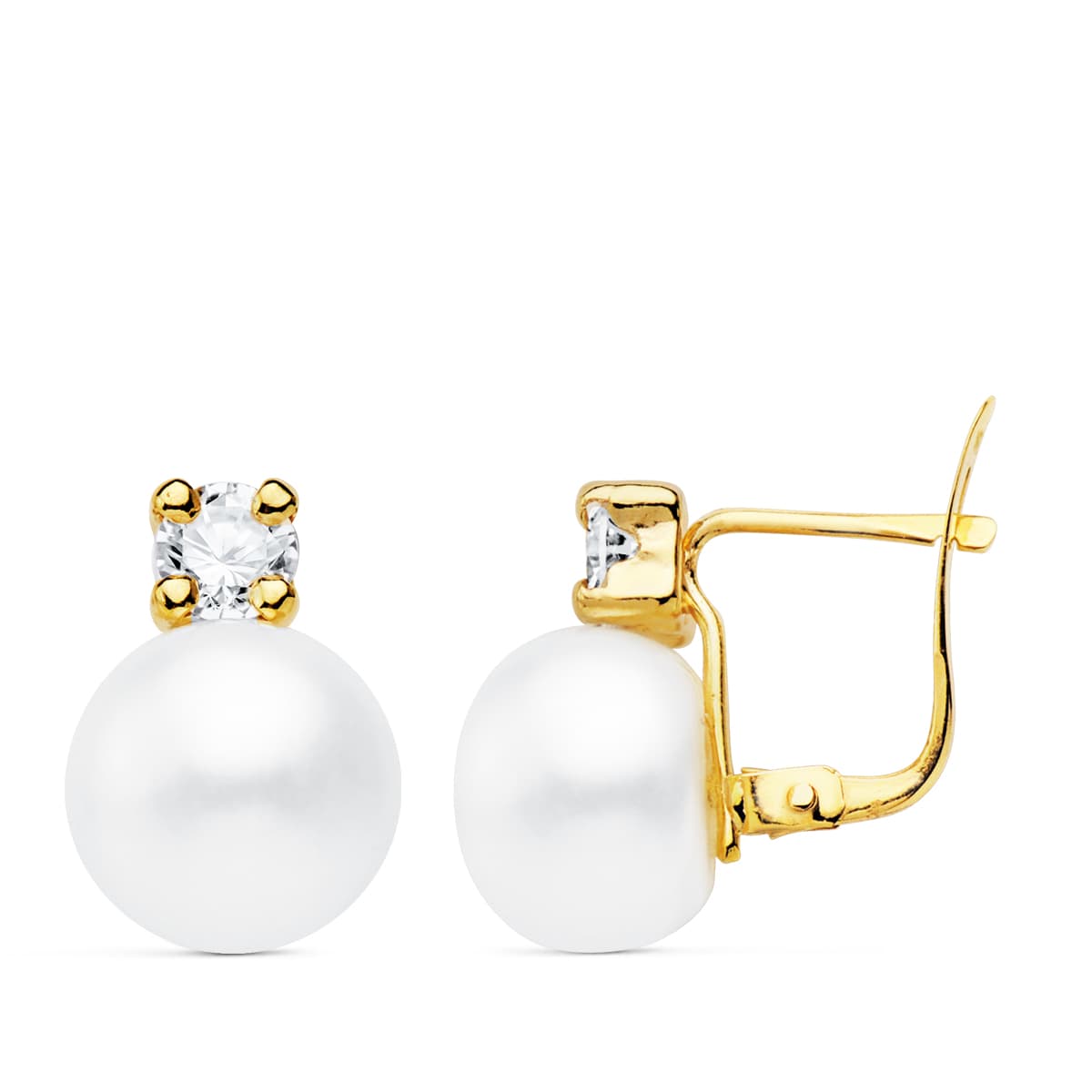 18K PENDIENTES ORO AMARILLO PERLA Y GARRAS 13X9 MM CIERRE CATALAN