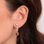 18K PENDIENTES ORO AMARILLO PIEDRA CUADRADA COLOR KUNCITA 28X8 MM CIERRE PRESION