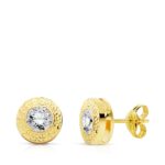 18K PENDIENTES ORO AMARILLO REDONDOS 7 MM CON GRECA Y CIRCONITA CIERRE PRESION