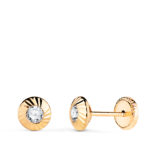 18K PENDIENTES ORO AMARILLO REDONDOS ORLA TALLADA CIRCONITA, MEDIDA: 5,5MM CIERRE TUERCA