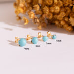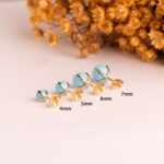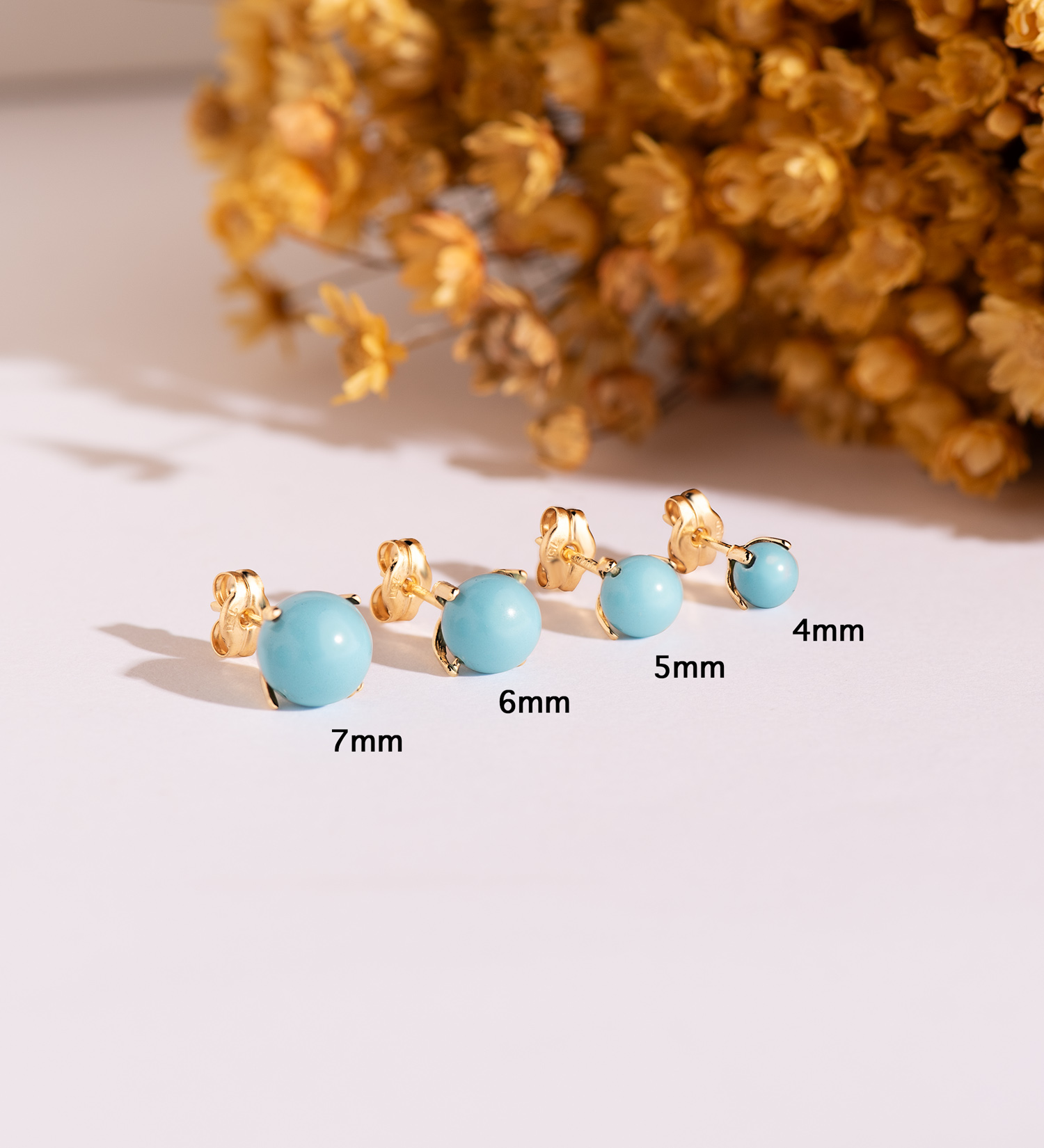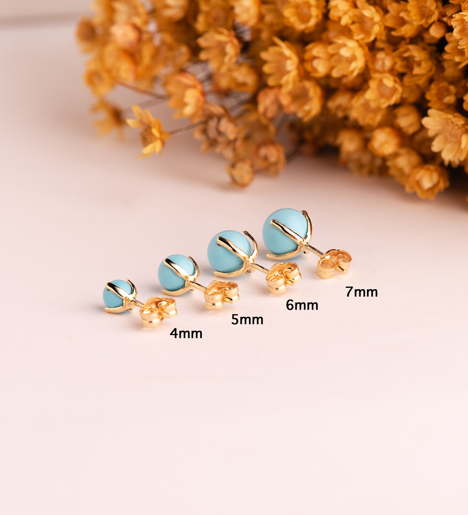 18K PENDIENTES ORO AMARILLO TURQUESA CON 4 GARRAS, MEDIDA: 5 MM, CIERRE PRESION