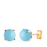 18K PENDIENTES ORO AMARILLO TURQUESA CON 4 GARRAS, MEDIDA: 7 MM, CIERRE PRESION