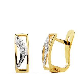 18K PENDIENTES ORO BICOLOR BANDAS 17X8 MM CIERRE OMEGA