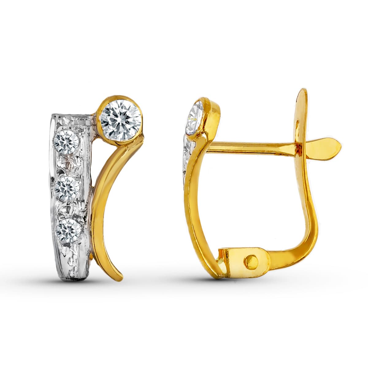 18K PENDIENTES ORO BICOLOR CIRCONITA 11X5 MM CIERRE CATALAN