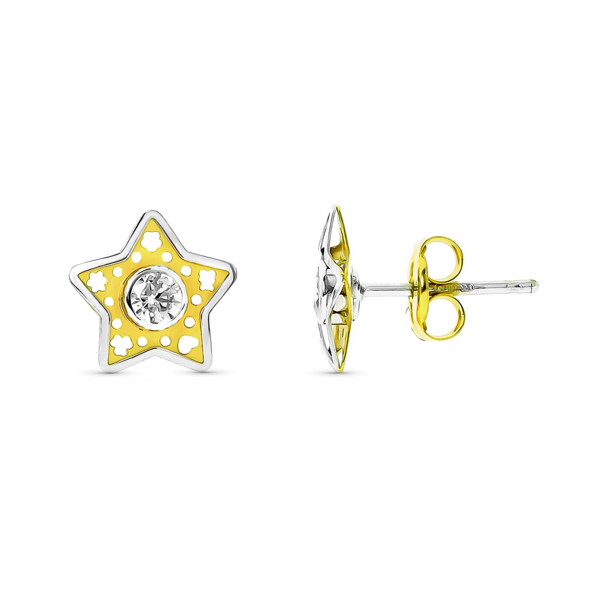 18K PENDIENTES ORO BICOLOR COMUNION ESTRELLA CIERRE PRESION