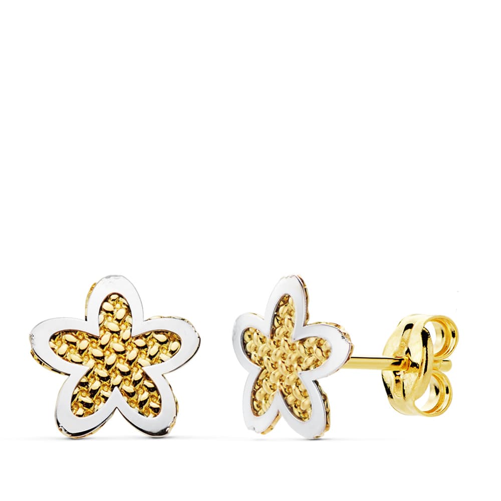 18K PENDIENTES ORO BICOLOR FLOR 7,5X7,5 MM CIERRE PRESION