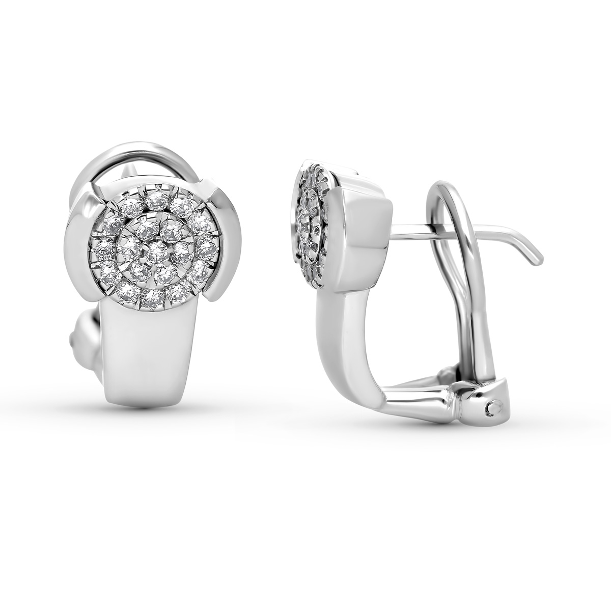18K PENDIENTES ORO BLANCO 38 DIAMANTES NATURALES 0,35 QTS SI-H, CIERRE OMEGA 14,5X9 MM