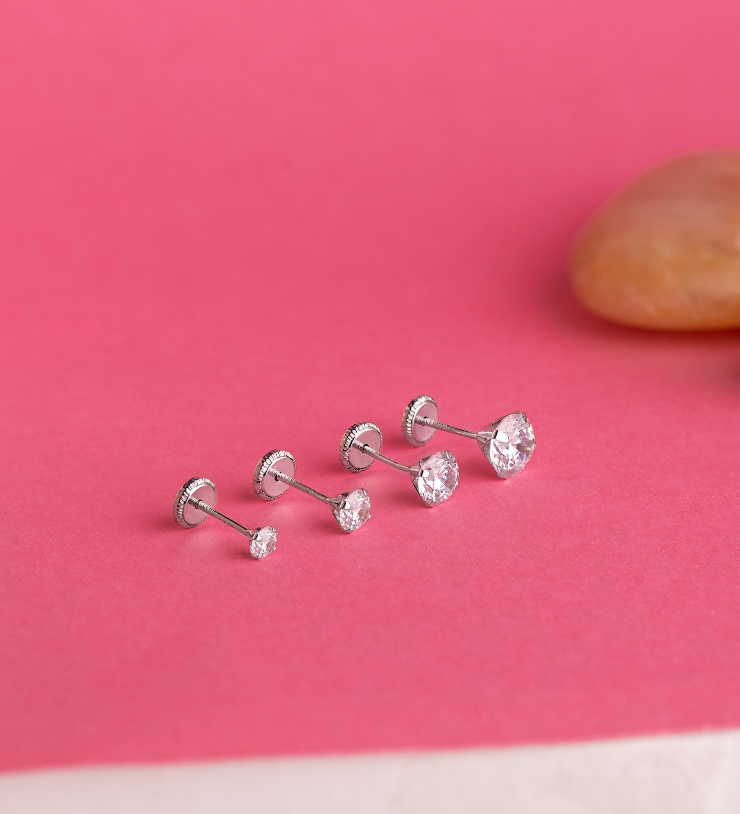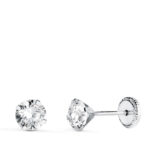 18K PENDIENTES ORO BLANCO 4 GARRAS CON CIRCONITA, ANCHO: 5 MM CIERRE TUERCA