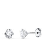 18K PENDIENTES ORO BLANCO 6 GARRAS CON CIRCONITA, ANCHO: 5 MM CIERRE TUERCA