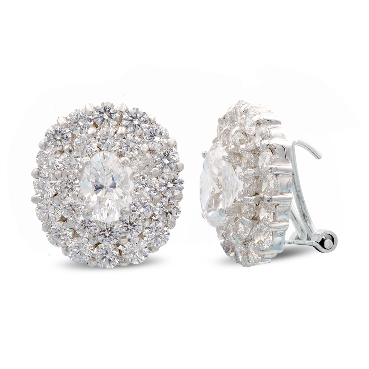 18K PENDIENTES ORO BLANCO CIRCONITA 14X12 MM CIERRE OMEGA