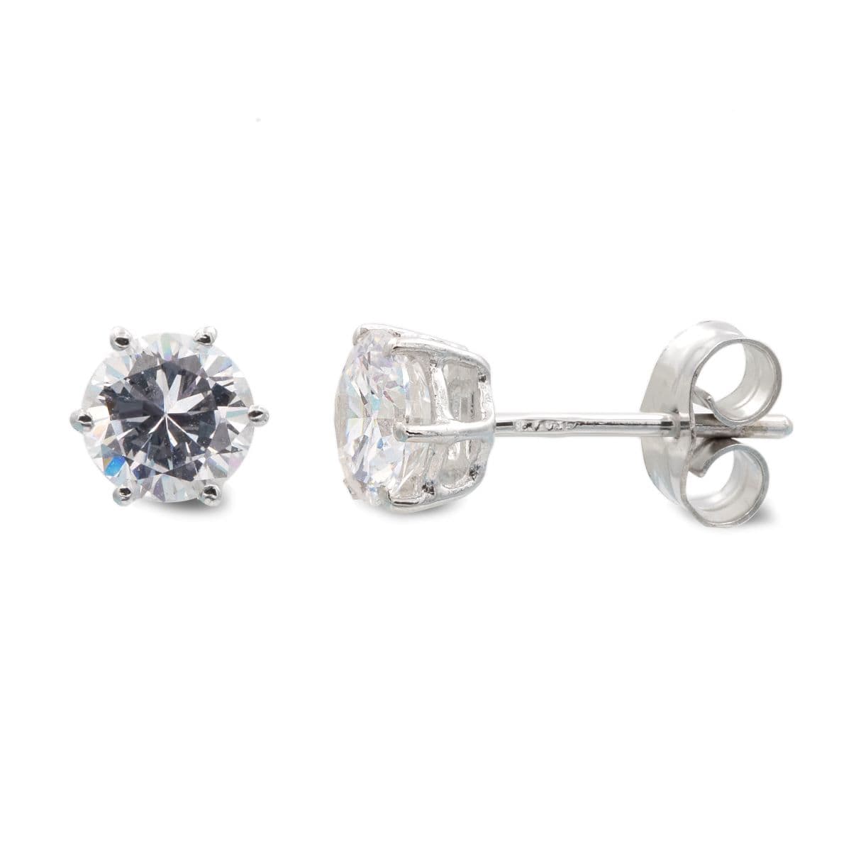 18K PENDIENTES ORO BLANCO GARRAS CIRCONITA 6X6 MM CIERRE PRESION