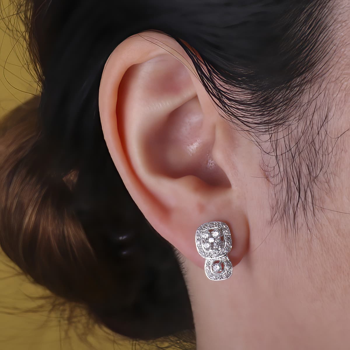18K PENDIENTES ORO BLANCO JUEGO NOVIA CIRCONITA 15X9 MM CIERRE PRESION