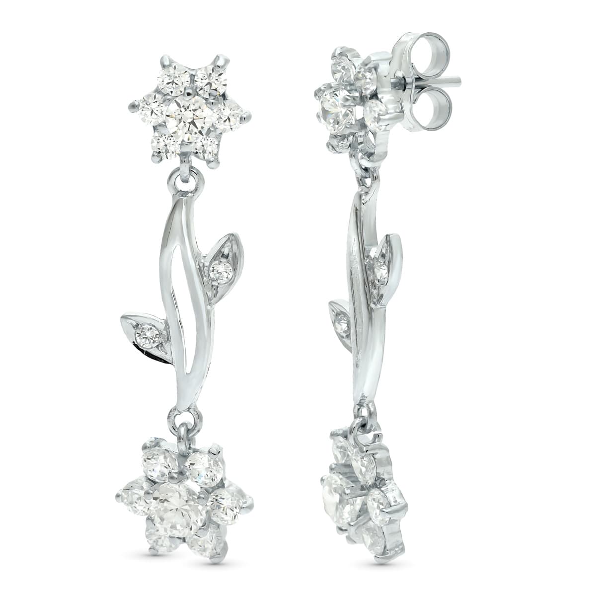 18K PENDIENTES ORO BLANCO JUEGO NOVIA CUAJO DE CIRCONITA 30X9 MM PRESION