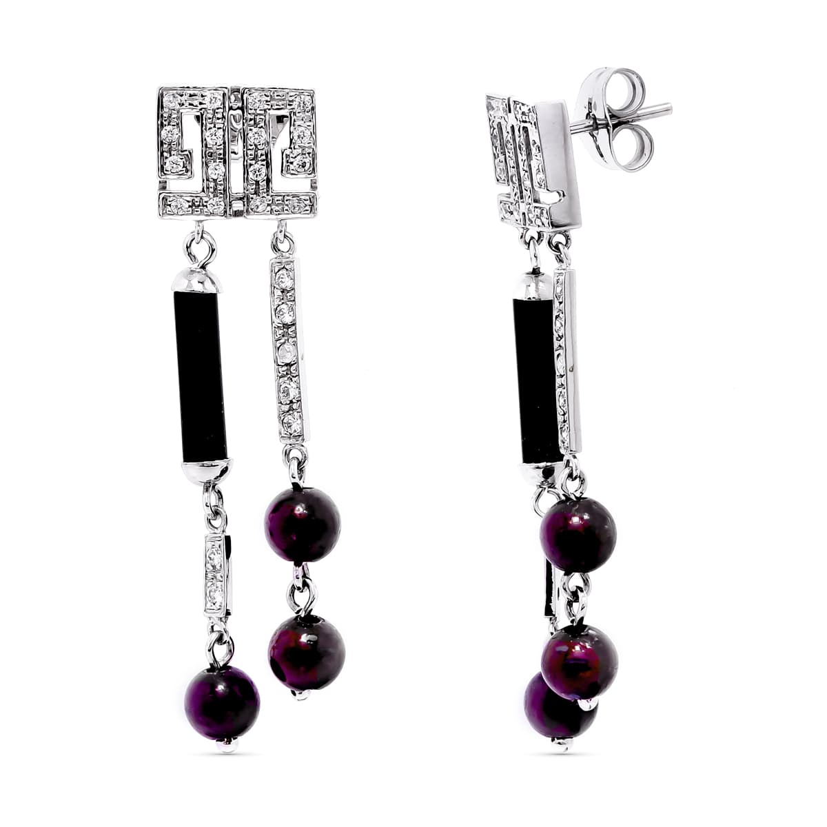 18K PENDIENTES ORO BLANCO LARGOS BOLAS Y CIRCONITA 43X10 MM CIERRE PRESION