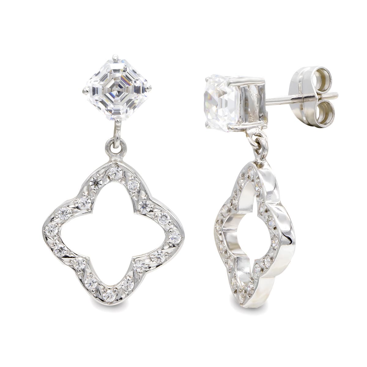 18K PENDIENTES ORO BLANCO LARGOS CIRCONITA 27X15 MM CIERRE PRESION