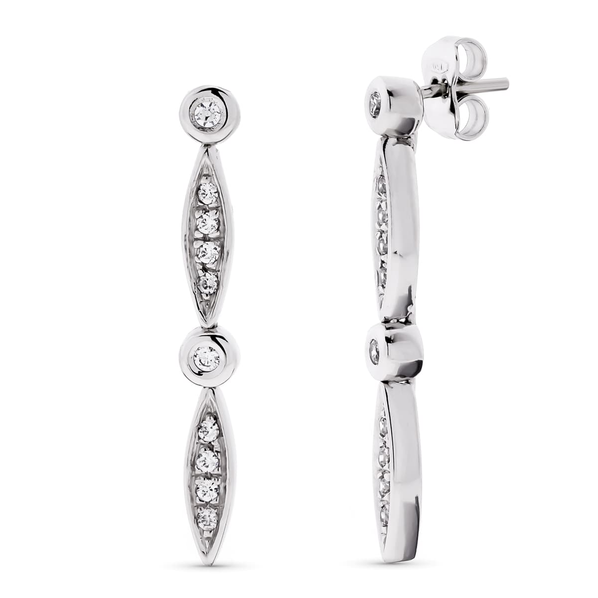 18K PENDIENTES ORO BLANCO LARGOS CIRCONITA 30X4 MM CIERRE PRESION