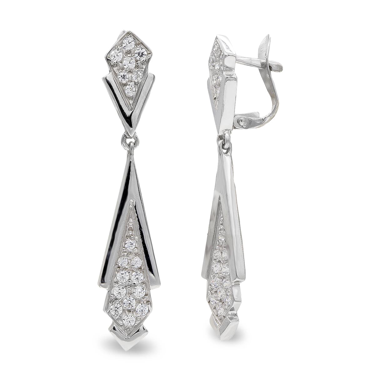 18K PENDIENTES ORO BLANCO LARGOS CIRCONITA CIERRE CATALAN