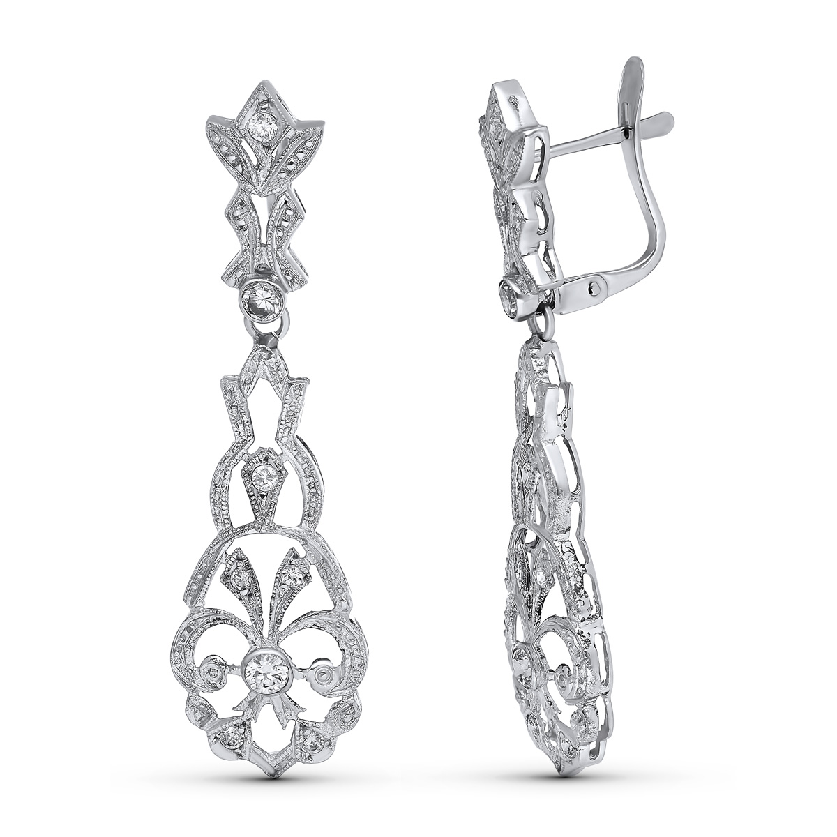 18K PENDIENTES ORO BLANCO LARGOS CIRCONITA CIERRE CATALÁN