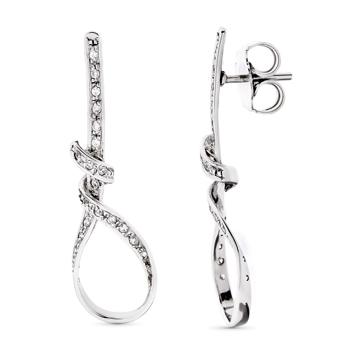 18K PENDIENTES ORO BLANCO LARGOS NUDO CIRCONITA 41X12 MM PRESIÓN
