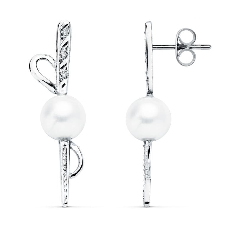 18K PENDIENTES ORO BLANCO PERLA 30X9 MM CIERRE PRESION