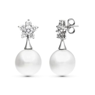 18K PENDIENTES ORO BLANCO PERLA 9X5 MM CIERRE PRESION