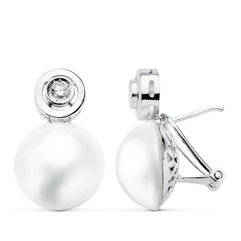 18K PENDIENTES ORO BLANCO PERLA JAPONESA 15 MM CIERRE CATALÁN