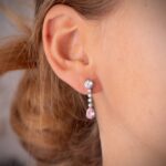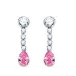 18K PENDIENTES ORO BLANCO PIEDRA ROSA GOTA Y CIRCONTIAS, 22X5 MM, CIERRE PRESION