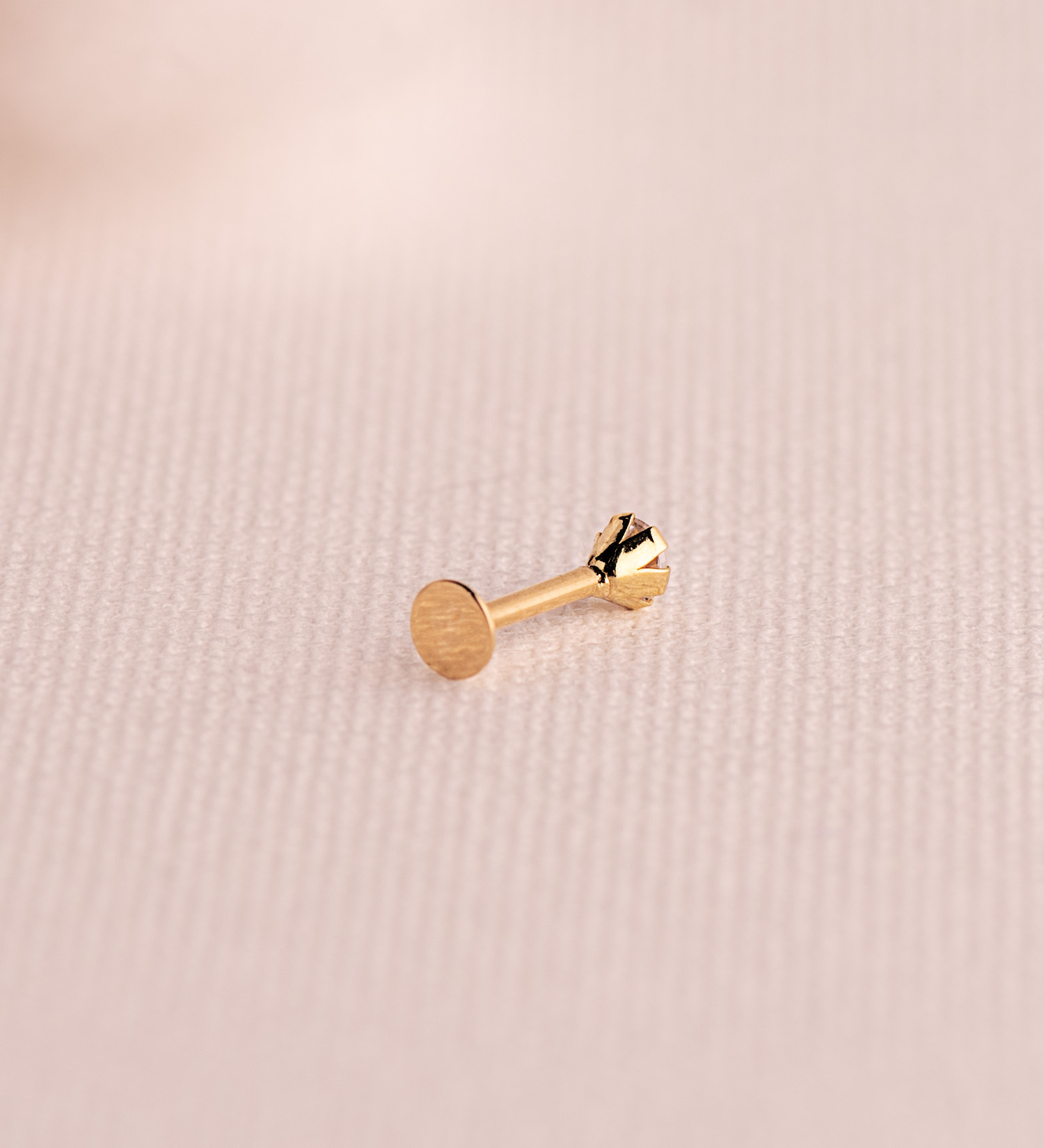 18K PIERCING DE OREJA ORO AMARILLO CIRCONITA CON GARRAS 3,5 MM, GRUESO BARRA 1MM, CIERRE TUERCA