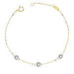 18K PULSERA BICOLOR CADENA FORZADA 3 DIAMANTES LABORATORIO 0,045 QTS, G-VS2, LARGO: 19 CM