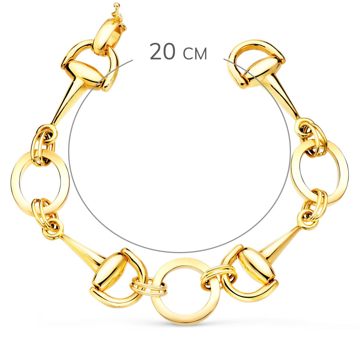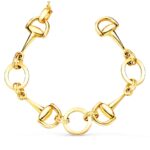 18K PULSERA ORO AMARILLO ARTICULADA CON ESTRIBOS Y CIRCULOS EN BRILLO 20CM