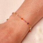 18K PULSERA ORO AMARILLO BOLAS COLORES 3MM, LARGO: 18,5 CM