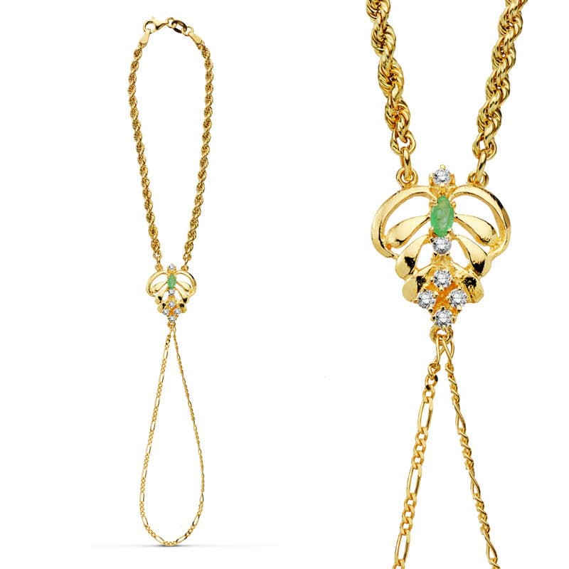 18K PULSERA ORO AMARILLO INDIA PIÑA Y CORDON