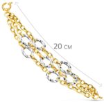 18K PULSERA ORO BICOLOR TRIPLE CADENA HUECA MOTIVOS REDONDOS 20CM