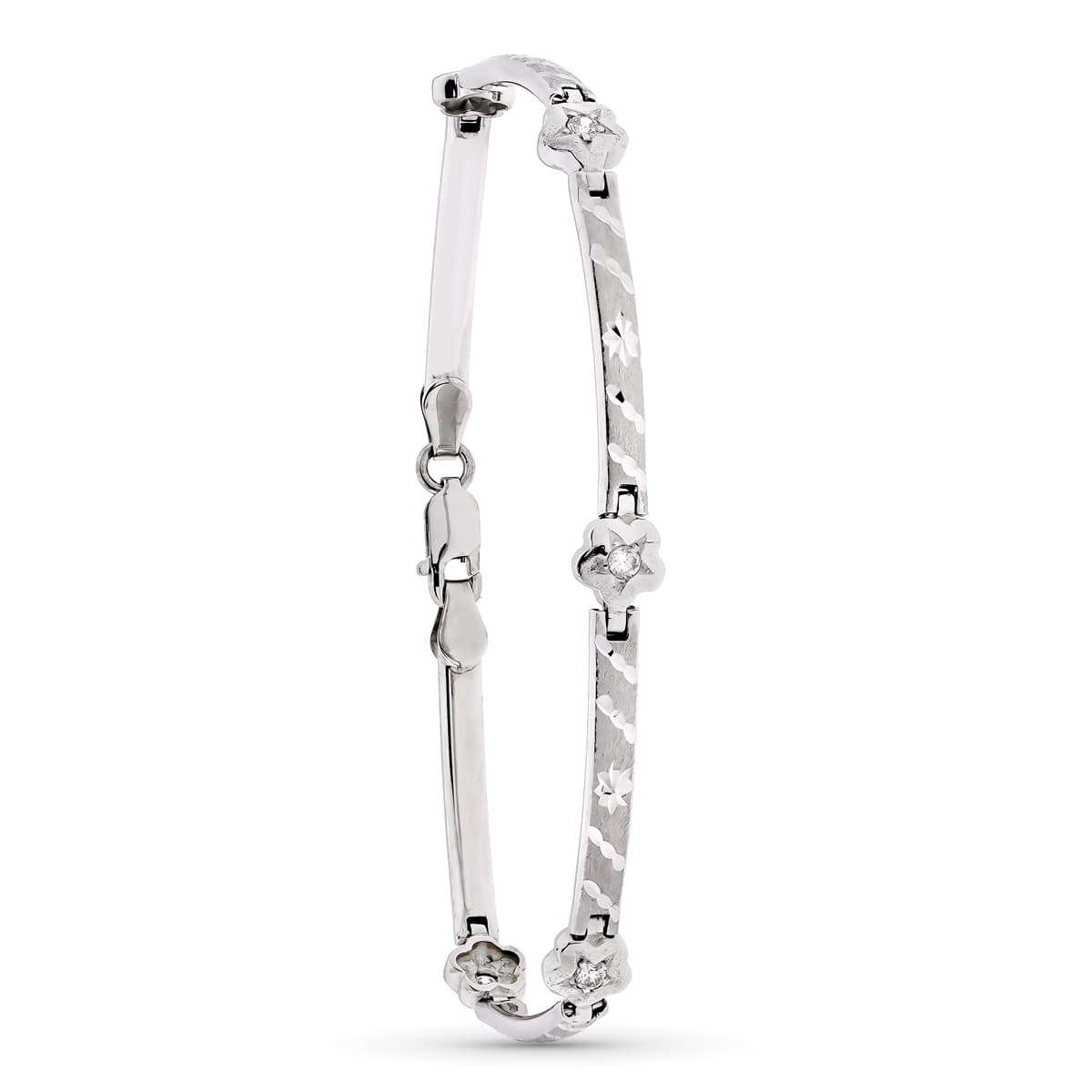18K PULSERA ORO BLANCO MATE Y BARRAS Y FLORES 18,5 CM