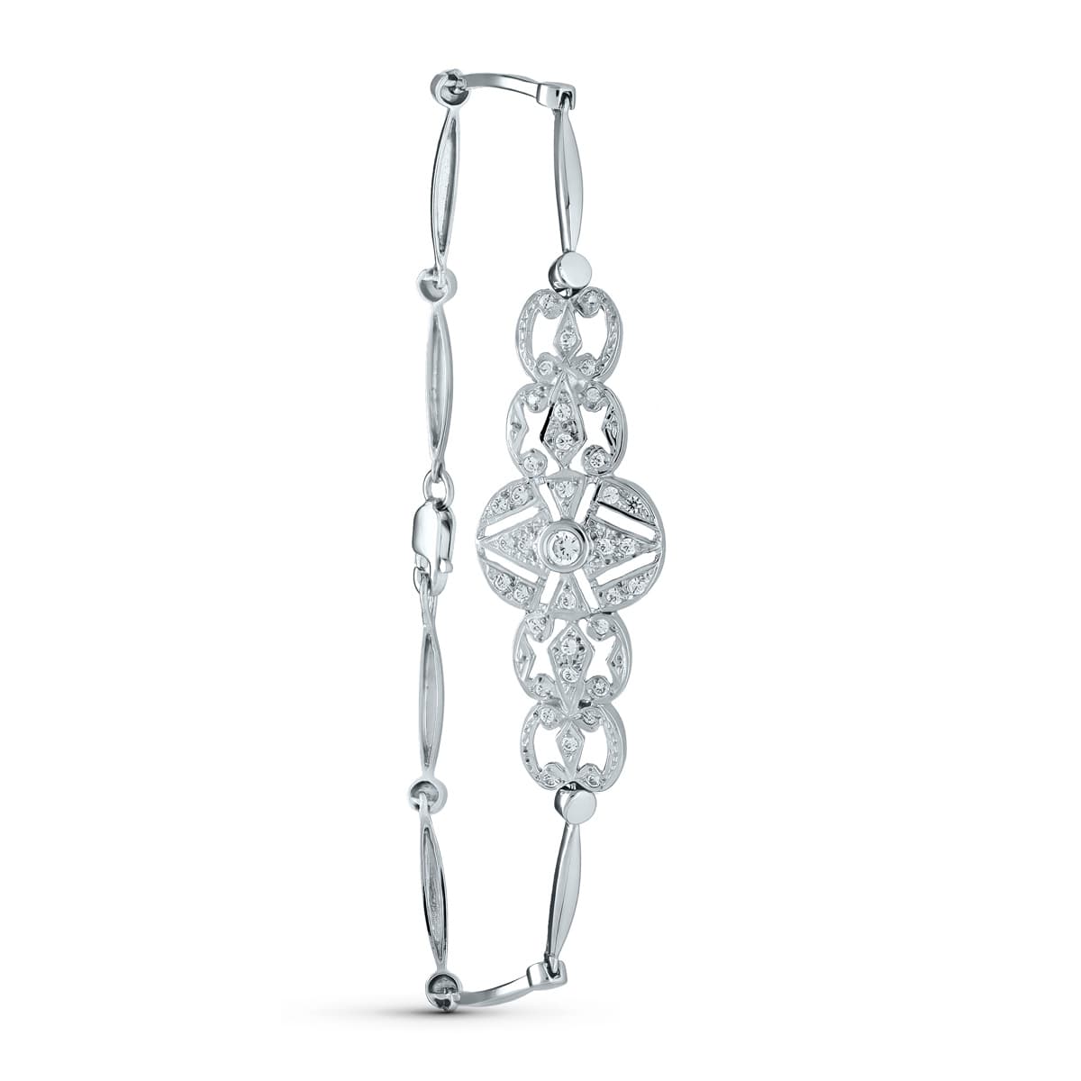 18K PULSERA ORO BLANCO SEMIRIGIDA CIRCONITA 18CM CIERRE MOSQUETON