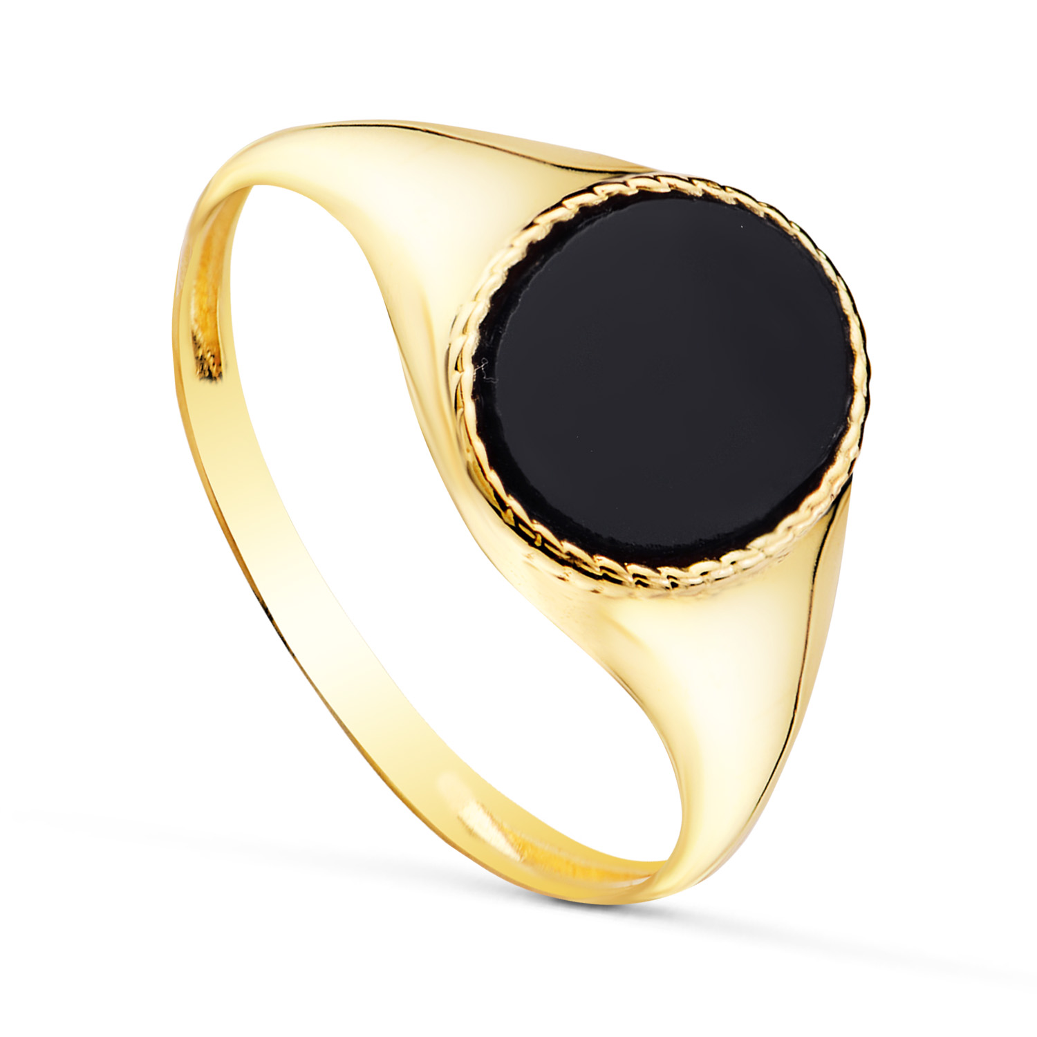 18K SELLO ORO AMARILLO BRILLO CON PIEDRA OVAL ONIX 10 X 8 MM ,