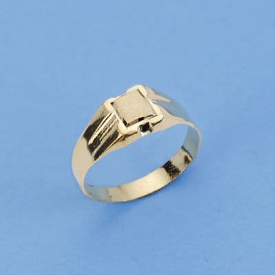 18K SELLO ORO AMARILLO HUECO PARA BEBE O MEÑIQUE CABEZA CUADRADA LATERAL GALLONEADO