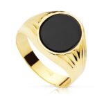 18K SELLO ORO AMARILLO PIEDRA ONIX OVAL 12X10 MM