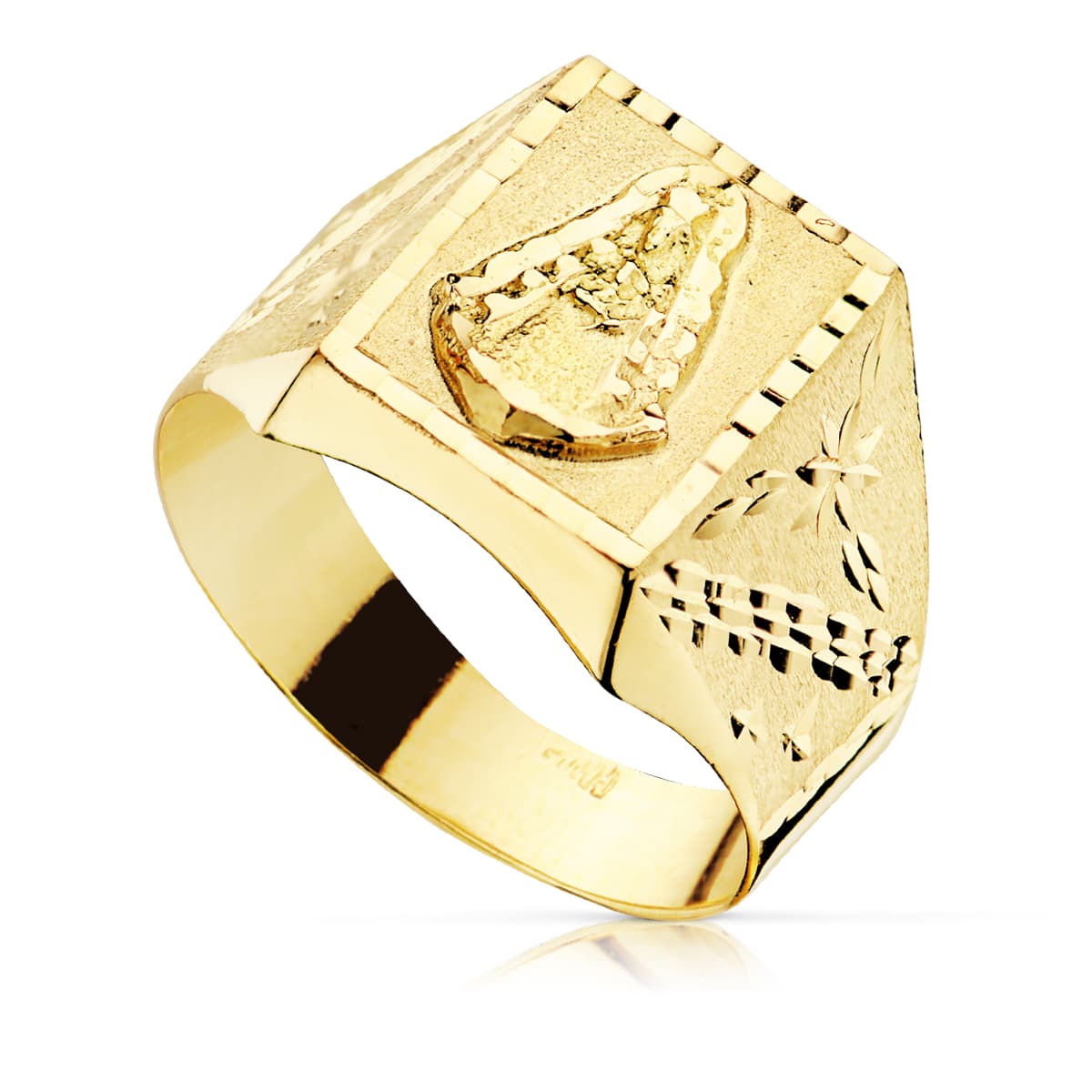 18K SELLO ORO CABALLERO AMARILLO HUECO TALLADO VIRGEN DEL ROCIO 13X11 MM
