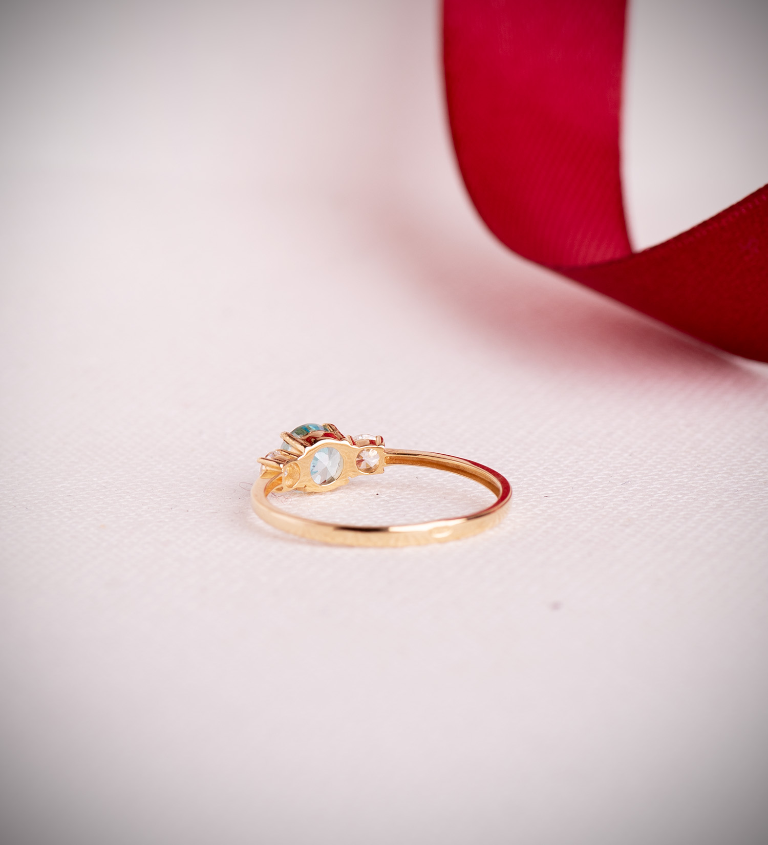 18K SORTIJA ORO AMARILLO AGUAMARINA ICE Y CIRCONITAS EN GARRAS. ANCHO: 5 MM