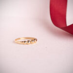 18K SORTIJA ORO AMARILLO CON CINCO BOLAS EN DISMINUCION. ANCHO: 4 MM
